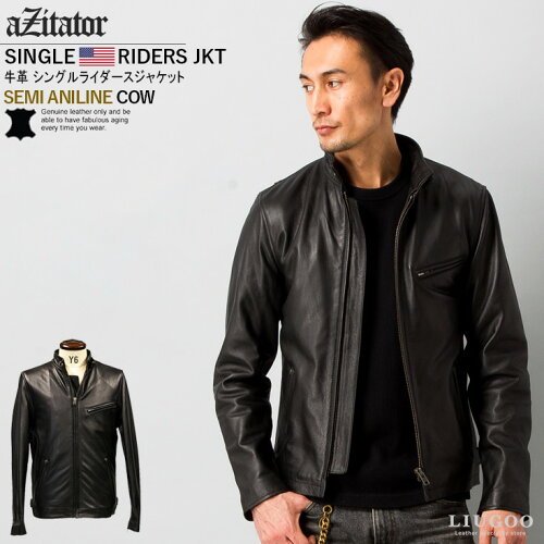 aZitator 本革 シングルライダースジャケット メンズ アジテーター SRS06A シングルライダース ライダースジャケット レザージャケット 革ジャン 皮ジャン ダブルライダース 本革ジャケット ブラック 黒 ジャケット アウター ブルゾン バイク ライディングジャケット